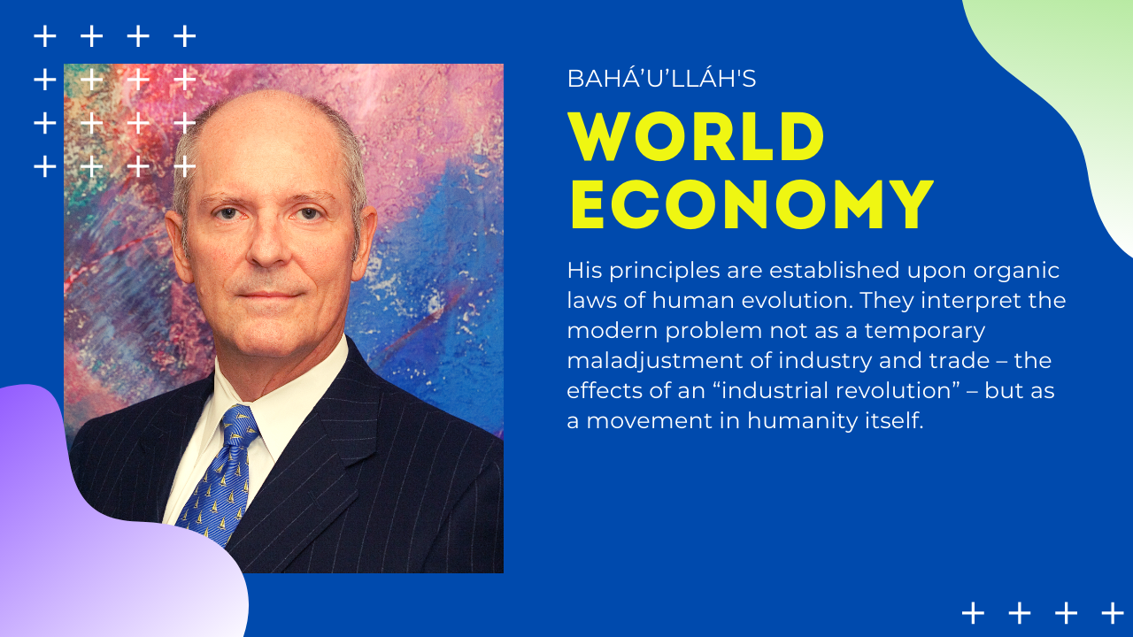 The world economy of Bahá’u’lláh transcends in scope and purpose the belated response to the risk of calamity made by economists and statesmen under the pressure of events in recent years. His principles are established upon organic laws of human evolution. They interpret the modern problem not as a temporary maladjustment of industry and trade – the effects of an “industrial revolution” – but as a movement in humanity itself. They make the necessary connection between the spiritual and practical affairs of men which alone can breathe the breath of life into any social mechanism.